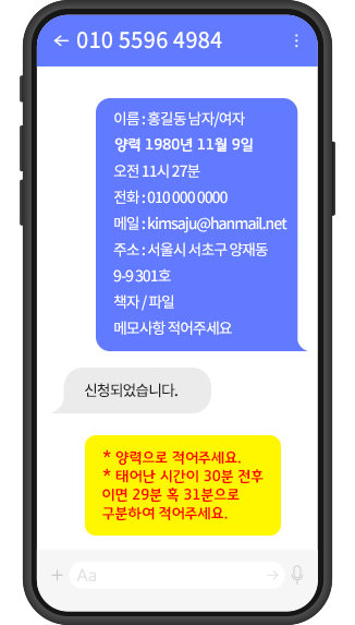 이름 : 홍길동 남자/여자 양력/ 음력